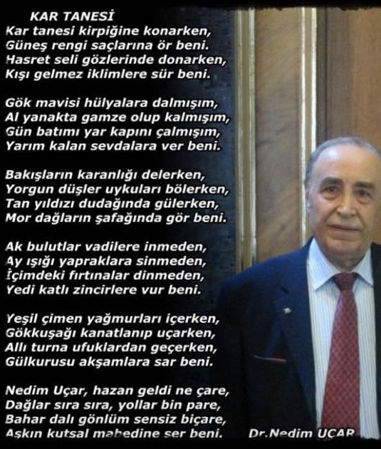 Kapadokya yıldızları arasından bir parlak yıldız daha söndü! Hemşerim Dr. Nedim Uçar, onurlu yaşamını bezeyen şiirsel yolculuğundan sonsuzluk yolculuğuna göçerken; eşi Emsal Hanıma ve evlatlarına dayanma gücü ve baş sağlığı diliyorum. Yerin aydınlık olsun güzel insan!