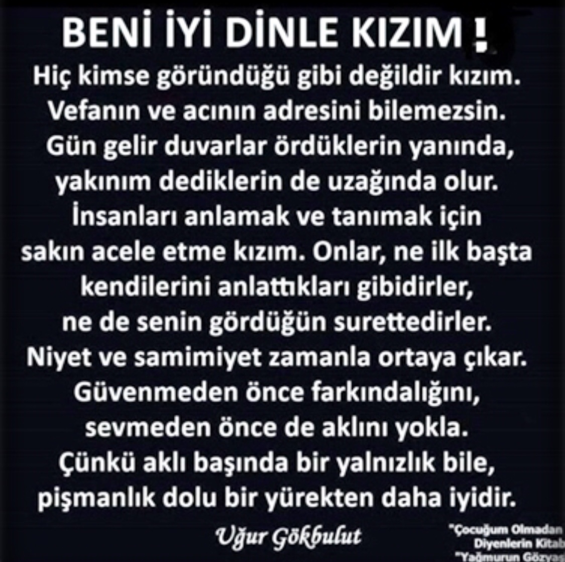 Yaşamın bir başka gerçeği şudur: Kimseye benzememek yalnız eder insanı. Kıyım böylelerini çok çabuk avlar! Kötülenen şahıs ünden oldursa elbette iftira atanlar elbette ki dininden olur.