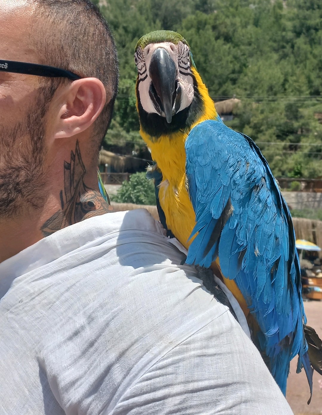 Papağana baktım, belli sözcükleri tekrar etse de bulunması gereken yer insan omuzu değil. Özgürce hareket edemiyor. Hiç istemedikleri bir ortamda elden ele, omuzdan omuza fotoğraf için kullanılıyor. Dağların denize indiği yerde insan elinde ne geziyorsun güzel papağan?