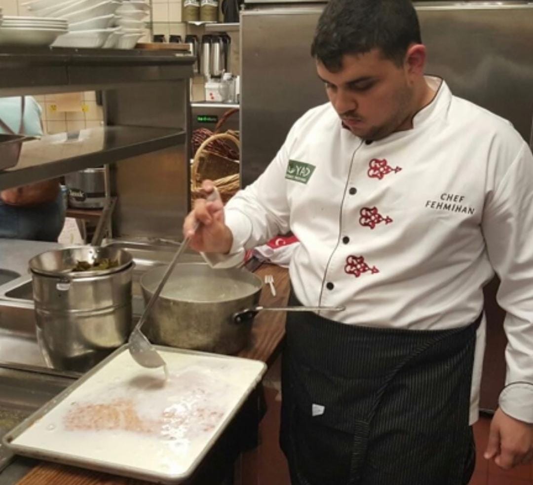 20.10.1998 Bursa’da doğdu. Otizm tanısını 3 yaşında öğrendik yoğun eğitim aldı, okuma yazma öğrendi. İlk kelimesi altı yaşında ‘makarna’ dedi. Daha iki yaşlarında mutfağa çok ilgisi vardı. Otizmde materyalleri öğretirken ondan isterdim. Soğanı getir, salçayı getir, domates getir. Çorba yaparken o gelip karıştırmak isterdi yemekleri. Bu şekilde mutfağa ilgisini keşfettim ve sürekli yönlendirdim. 5 yaşında kendi başına poğaça yapabiliyordu. 16 yaşına geldiğinde birbirinden lezzetli kendi yaptığı pasta ve kurabiyeler ile ilk sergisini hanımların beğenisine ördekli salonunda yaptık.