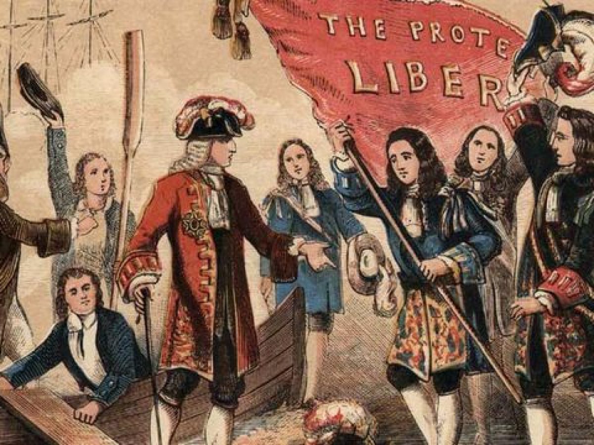 1688’de John Locke’n fikir babalığını yaptığı Muhteşem Devrimi gerçekleştiren 463 gemi ve 40.000 askerle İngiltere açıklarına gelen Avrupa ortak gücü diyebileceğimiz donanmaya ait gemilerin yelkenlerinin tamamında Adalet, Parlamento ve Protestanlık kelimeleri yazmaktaydı.