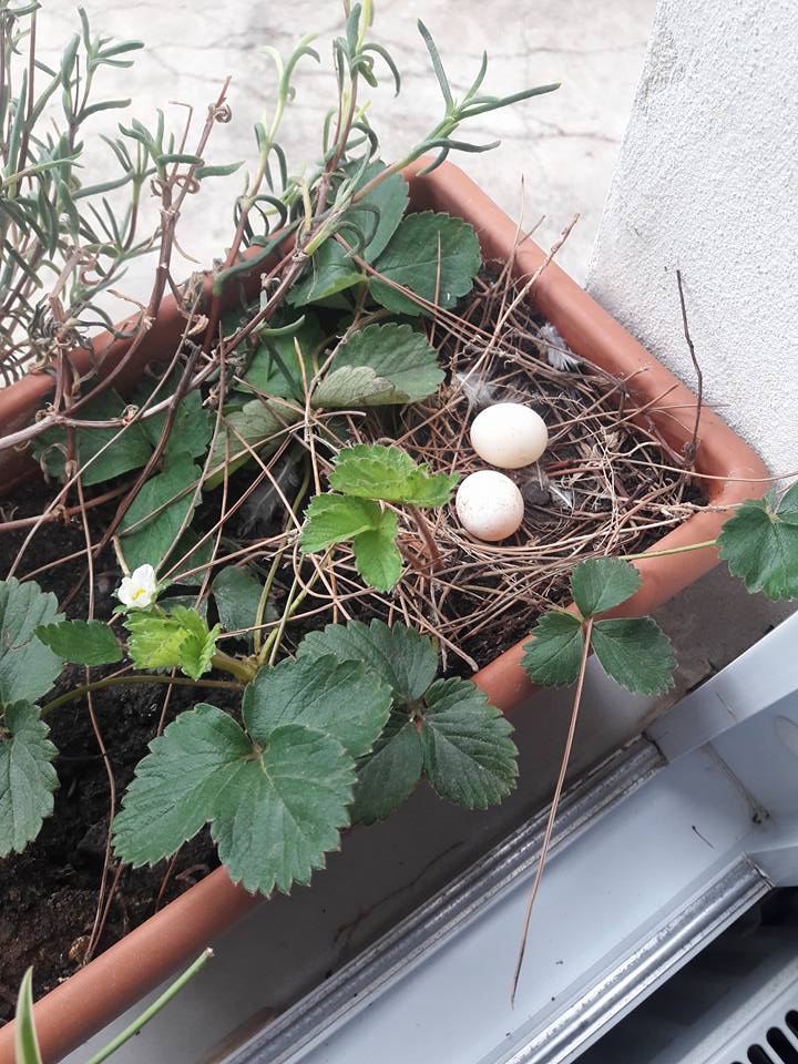 O an anlam veremedim. İçeriye girdim, kahvaltımı hazırladım, kahvaltımı yaptım, çayımı içtim, tekrar balkona gittim. Çileğin olduğu saksıya yine gözüm takıldı. Bir de göreyim… Orada çöpler vardı, yuva yaptığını düşündüm. Öyle de oldu.
