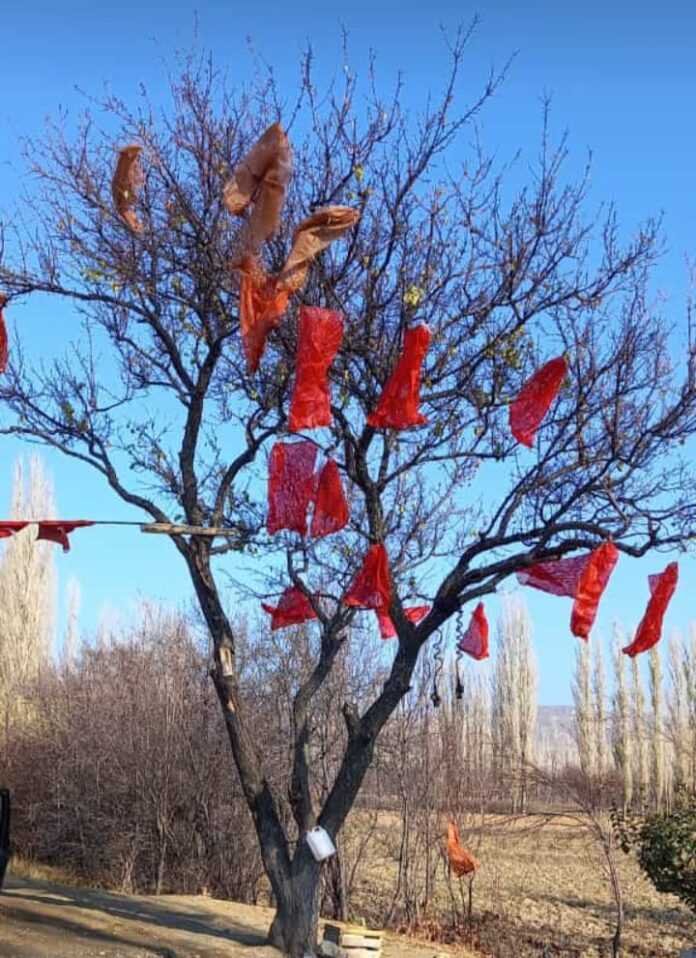 Ankara’dan çıkalı epey olmuştu. Çorum’a yaklaşık 60 km kala bir ağacın dallarına renkli bir şeylerin asılı olduğunu gördüm. İlk gördüğümde ağaca dilek için çaput bağlandığını düşündüm. Hepsi de uzaktan koyu kırmızı renkte görünüyordu.