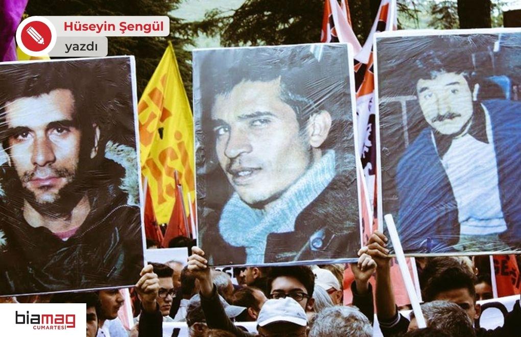 Birisinin elinde tuttuğu Hürriyet gazetesinin “İdam Edildiler” sürmanşetini okuyor ve sırasıyla Deniz’in, Yusuf’un, Hüseyin’in resimlerini görüyorum. Fidanken kırılan üç gencin.