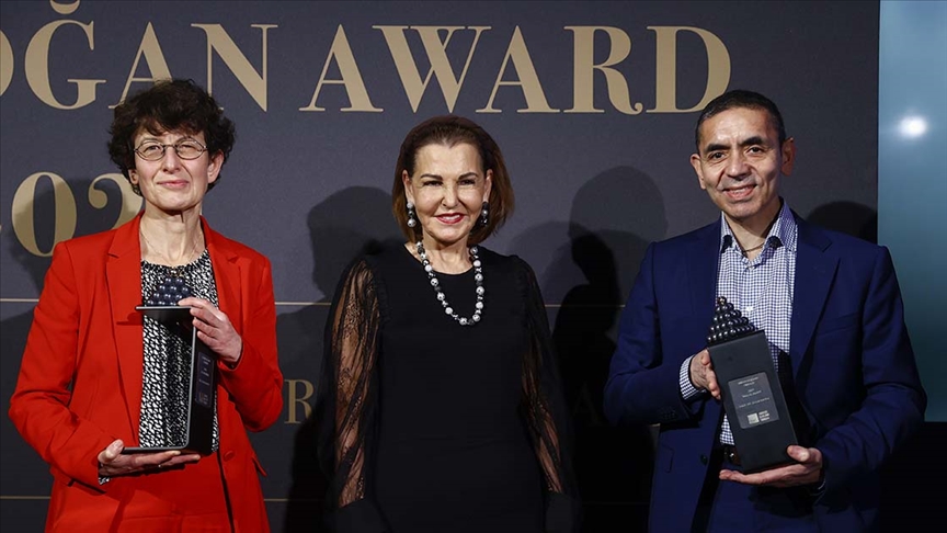 Aydın Doğan Vakfı’ nın BioNTech’in CEO‘su Uğur Şahin ve eşi Özlem Türeci‘ye verdiği ödülü takdim etmek için vakıf başkanı ve ailesi kalabalık bir gazeteci grubu ile beraber Almanya’ ya gitmişlerdi (1).