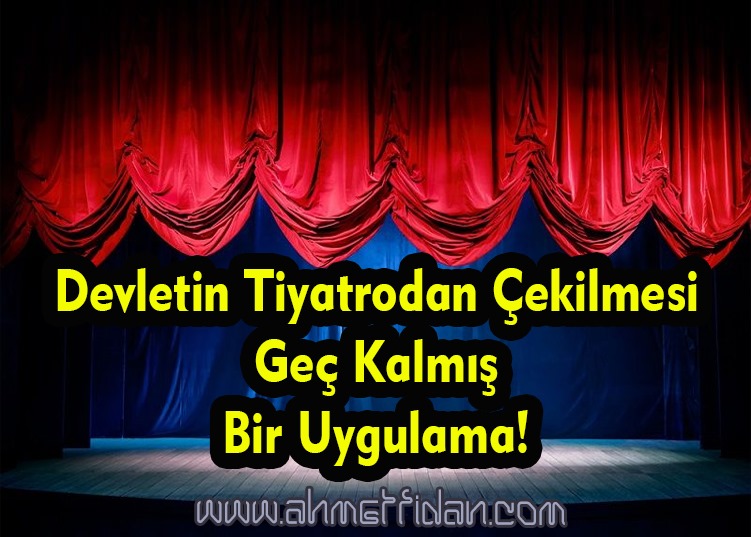 Bu gün Devletin Tiyatrolardan çekilmesine karşı direnen kesim tam anlamıyla SİYASAL BİR DİRENÇ göstermektedirler. Kaldı ki, devletin tiyatrodan çekilmesi demek bu kurum ve kuruulşların kapısına kilit vurmak demek değildir. Sadece ve sadece devletin sahipliğinden kurtulacaktır. Yani Ne Reşat Nuri Sahnesi, ne Muhsin Ertuğrul Sahnesi kapanmayacaktır. Zira bu ve böylesi mekanlar son dönem Türk san’atının anıt yapıları konumundadır. Bu gün devletin tiyatrodan çekilmesini protesto eden psikoz ile İBRAHİM MÜTEFERRİKA’NIN MATBAASINA KARŞI ÇIKAN psikoz MALESEF aynı psikozdur. Bunları “müzmin regl psikozu” olarak adlandırıyorum.