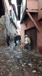 büyük ahşap kapılar, kapıların üzerinde dövme demirden yapılan kulplar ve tokmaklar bulunuyor. Komşuluğun önemini anlatan kapılar. Üst katlardaki pencereler kafesli veya cumbalı. Evler sarı, beyaz, mavi, mor renklere boyalı. Mavi renk yüzyıllar önce ne güzel tecrübe edilmiş ve kullanılmış. Mavi rengin böcekleri, sinekleri uzaklaştırma etkisi varmış. Birkaç tane mavi renkli ev görebilirisiniz. Evlerin arasında kaldırımsız, taş döşeli, çok dar sokaklar bulunuyor.