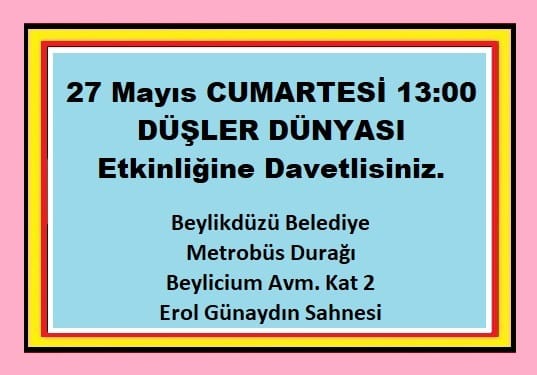 Etkinlikte katılımcılar genellikle kendi eserlerini seslendirdiler. Anneler Günü ve 19 Mayıs şiirlerinin okunduğu etkinlikte Düşler Dünyası Kültür Sanat Topluluğu Başkanı Halk Şairi İsmail Aydoğmuş: “Etkinliğimize ev sahipliği yapan, sanatın ve sanatçının dostu Beylikdüzü Belediye Başkanı Sn. Mehmet Murat Çalık’a, Kültür Müdürüne ve emeği geçenlere teşekkür ederiz” Dedi ve katılanlara teşekkür etti.