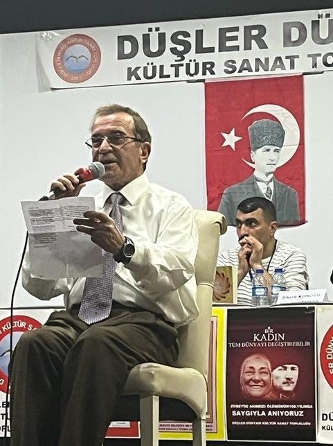 Sanat etkinliğinin sürdüğü sırada beni tanıyanların jest ve mimikleriyle ‘hoş geldiniz’ yaklaşımları aldım. İzlence yer yer şiir ve bağlama eşliğinde özgün ve empatik türkülerle sürdü. Yönetim masasında İsmail Aydoğmuş ve sunuş kürsüsünde Şengül Yıldırım görevleri başında görüntü verdiler.