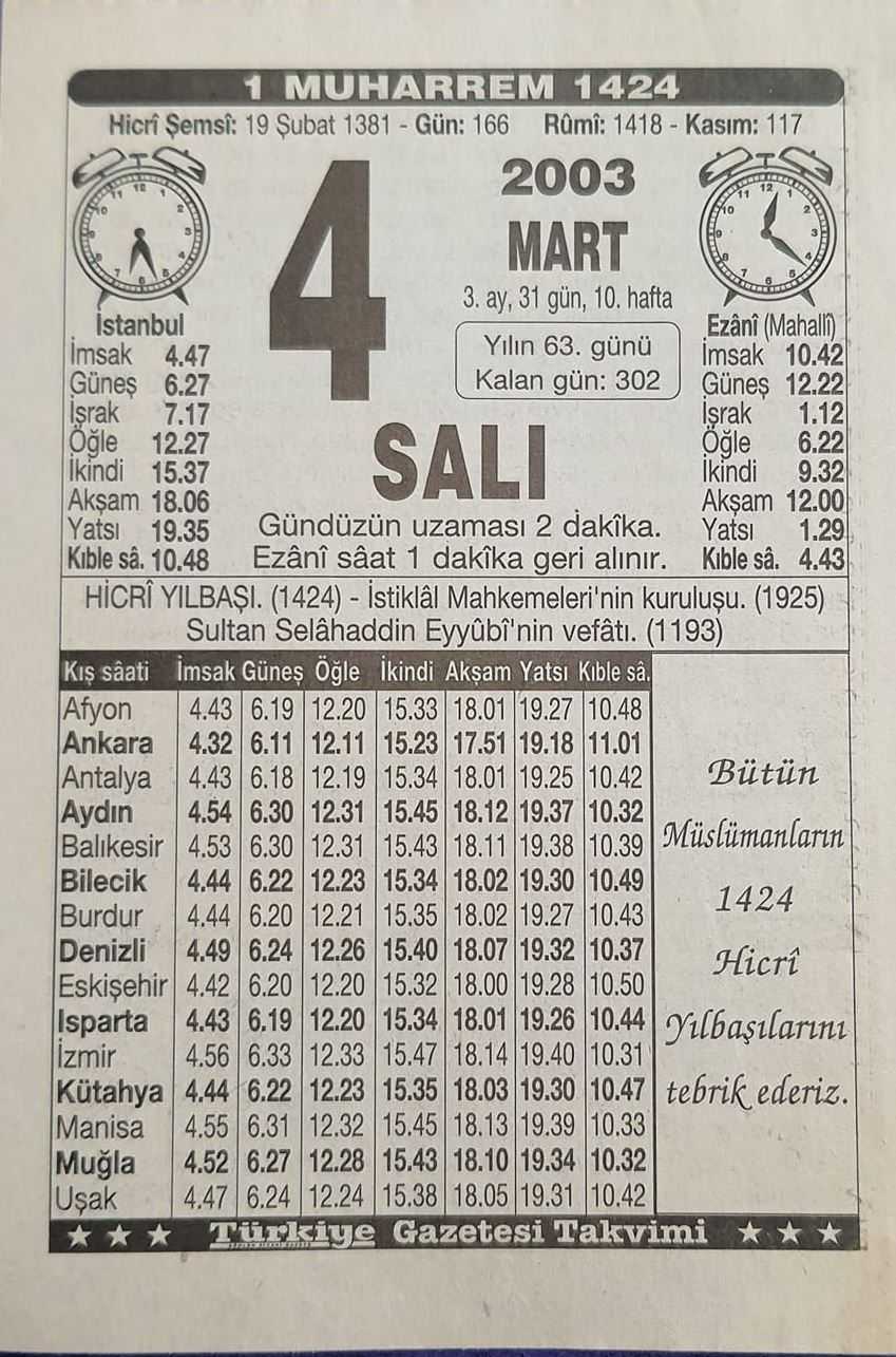 Bu satırların kaleme alındığı tarih Miladi olarak 3 Mart 2022 iken, Rumi takvime göre 21 Mart 1438’dir. Yani Rumi takvime göre mart ayı daha çıkmamıştır.
