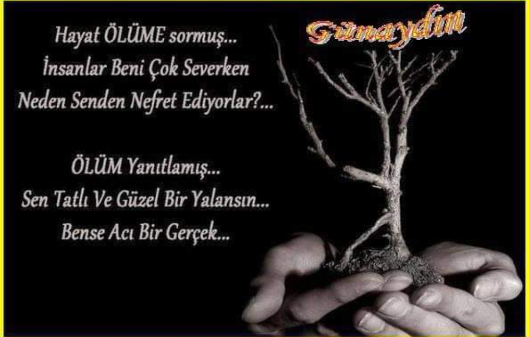 Hayat nedir diye sorsanız, 5 harften oluşan bir kelime derim.. Öyle değil, anlamı ne?.. diye sorsanız, o zaman derim ki;herkesin hayatının başka bir anlamı var.. Bana göre acı iken başkasına göre mutluluk olabiliyor.. Sana senin yaşadığın hayatı anlatabilmem için senin gözünden bakabilmeliyim.. Yoksa, anlattıklarım benden ileri gitmez, genelden sana gelemez..