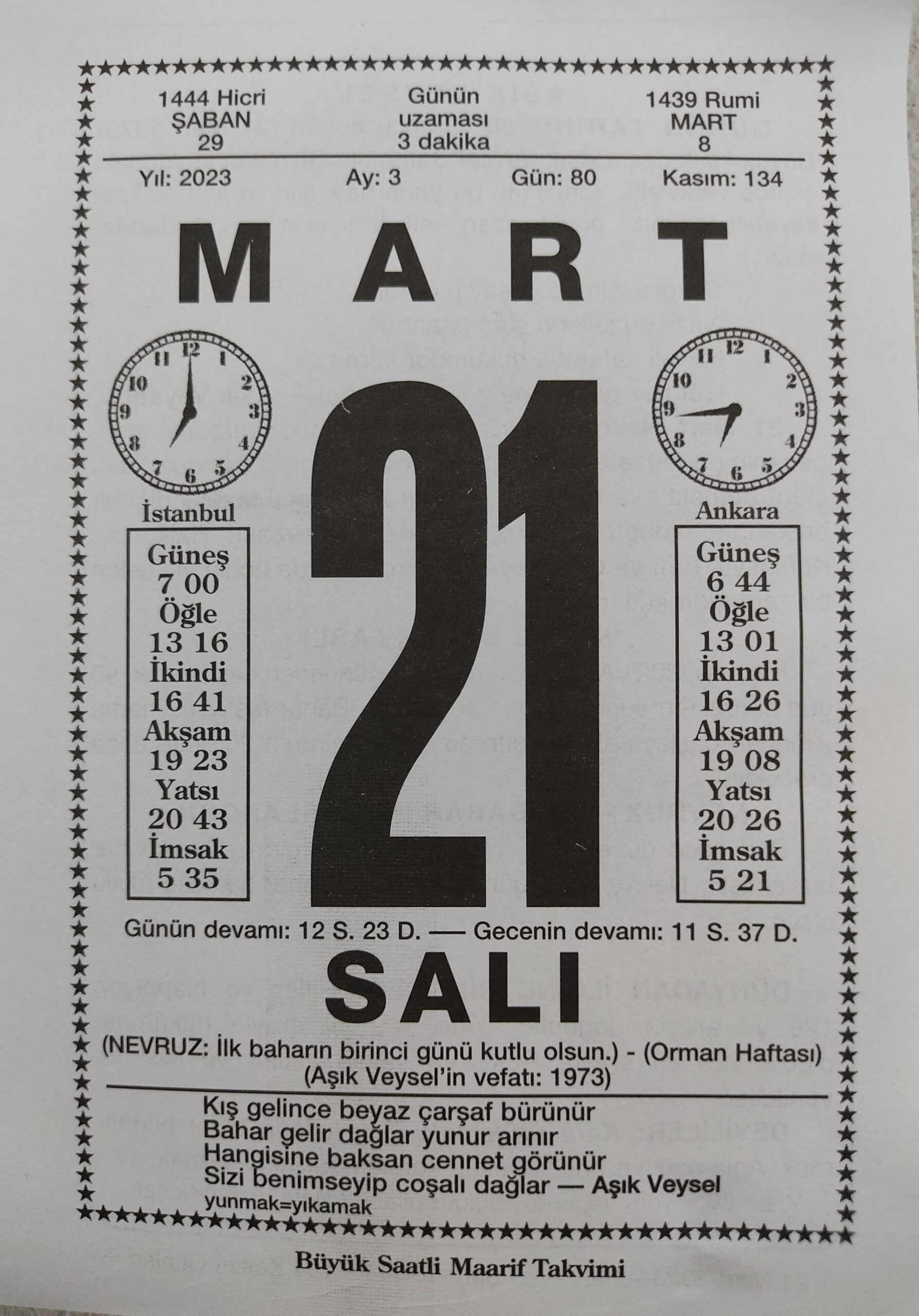 İstanbul’da güneşli ve pırıl pırıl pırıl bir hava…Gerek Hasanoğlan Köy Enstitüsü Müzik Öğretmeni ve Halk Ozanı Âşık Veysel Şatıroğlu,  50. ölüm yıldönümünde anmasında bulunmak ve gerekse 21 Mart Dünya Şiir Günü etkinliğine katılmak amaçlı  Gülhane Parkı’nda oldum. Ayrıca Parkta  Nevruz günü akışı …