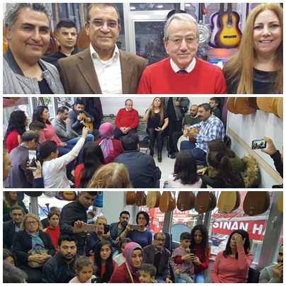 Mesut’un annesi, babası ve kardeşleri yanı sıra bağlama kursuna katılanlar ve kimi hemşerileri de oradaydı. Hepsi de güler yüzlü, içten, konuksever ve güzel insanlar! Bir başka ilginç görüntü; duvarlarda bağlamalar sıralı, THM sanatçılarının fotoğrafları bezeli… Baktıkça düşündürücü…