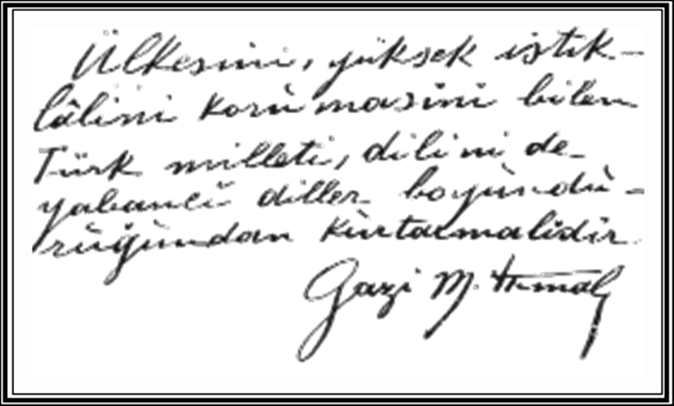 Böylesine bir çaba birçok dilde kendini göstermiştir. Türkçemizde Atatürk, dil devrimine öncülük etmiştir. Bu konuda düşüncelerini yer yer ulusuna aktarmıştır. NUTUK adlı başyapıtında bunları okumak olanaklıdır. İşte onlardan birisi: “Bakınız arkadaşlar, ben belki çok yaşamam. Fakat siz ölene dek, Türk gençliğini yetiştirecek ve Türkçenin bir kültür dili olarak gelişmeye devamı yolunda çalışacaksınız çünkü Türkiye ve Türklük, uygarlığa ancak bu yolla kavuşabilir.”