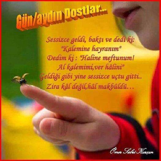 Güzel bir Salı gününüz olsun dostlarım. Sevgilerin en güzeli sizinle, mutlulukların en güzeli yanınızda, huzurun en güzelini içinizde yaşamanız dileğiyle, gününüz aydın, geleceğiniz umut, sevgi ve hoşgörüden geçsin… Gönül soframdan gönül sofranıza muhabbet olsun… Hoş kalın, hoşça kalın, her dem sevgiyle, hep dostça kalın, bir gün, bir yerlerde görüşmek ümidiyle…
