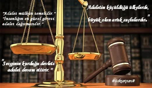 Peygamberimiz Hz. Muhammed, “Adaleti çiğneyen devlet adamlarını cezalandırmayan milletler çökmek zorundadır,” demiştir ve çok yakından bildiğimiz “Adalet Mülkün Temelidir” deyişi Hz. Ömer’e aittir. Acımasız orduların kumandanı Timurlenk bile, ”Memleketler kılıçla alınır, lakin adaletle muhafaza edilir,” derken adeta kazandığı zaferlerin altında yatan gerçeği açıklamıştır.