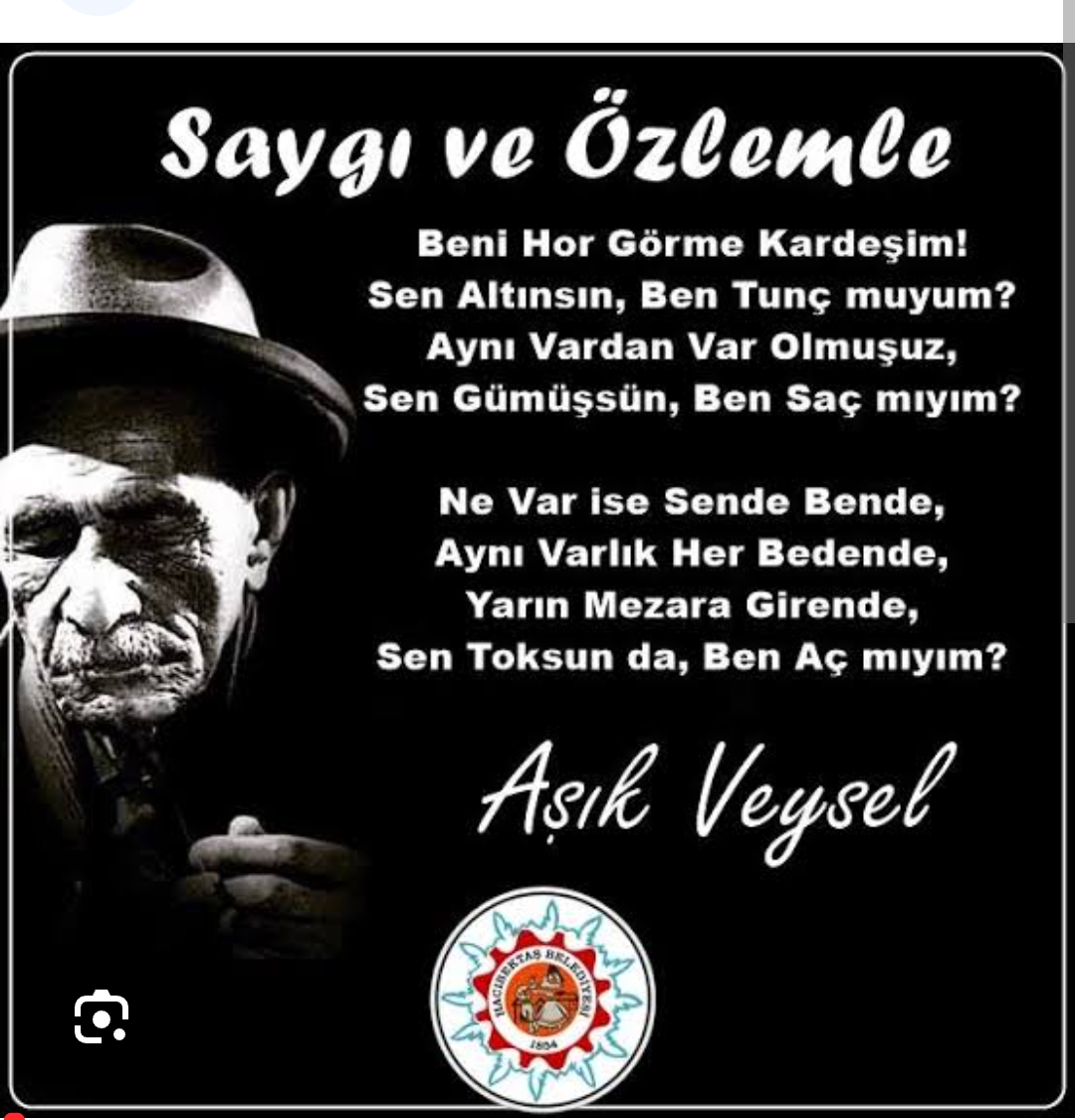 - Yüzyılın büyük ozanı Âşık Veysel’i yalnız sevenleri değil, bütün dünya unutmadı. Şunu da unutmadı: Görmeyen ama duyan gönlün derinliğini…