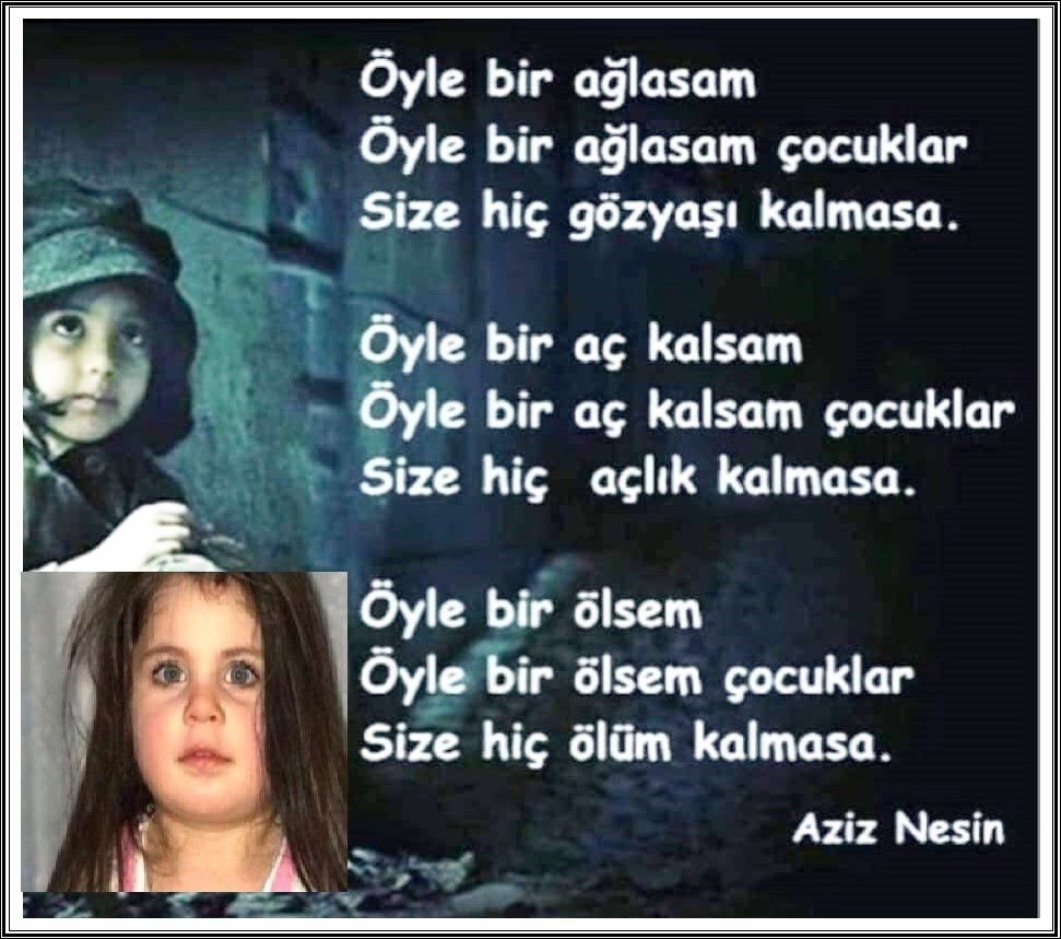 İnsanların artık insan olmadığının, ‘’adeta ruhsuz vitrin mankenleri haline geldiğinin görüyoruz’’ Çocuklar ölmesin..Evet onların ufacık yürekleri..minicik elleri var..Suçları.onların çocuk olmak mı?