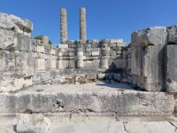 Apollon Tapınağı’nın ortasında bulunan, onun simgelerini taşıyan mozaik yanıltmasın sizi, orjinal değil. Aslı Fethiye arkeoloji müzesindeymiş.