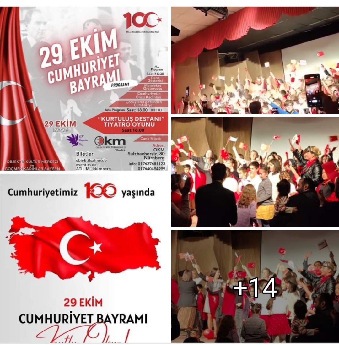 Nürnberg Objektif Kültür Merkezinde 29 Ekim Cumhuriyet Bayramını geleceğimiz yavrularımızla kutlarken yeri geldi ağladık, yeri geldi coştuk, yeri geldi düşüncelere daldık. Konu vatan, bayrak, millet olunca insan hastalığı, her şeyi unutuyor.