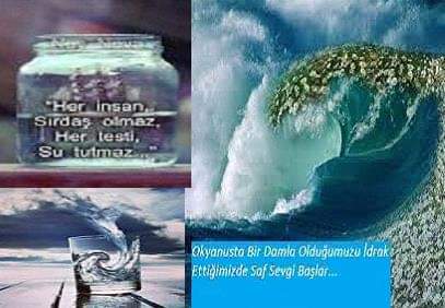 Bu bir bardak su, Dünya kurulduğundan bu yana, acaba kaç sefer yer ile gök arasında gitti-geldi. Yeryüzüne indi; insanların ve hayvanların vücudundan geçti, kan oldu, gözyaşı oldu, idrar oldu, çamurlandı, kirlendi. Nihayet Güneşin hararetiyle buharlaştı, rüzgârlar onu semada diyar diyar gezdirdi. Böylece âdeta filtreden geçti, arındı, temizlendi, saf ve berrak bir bulut oldu. Bazen yağmur damlası, bazen dolu, bazen de kar tanesi hâlinde yine yeryüzüne “rahmet” olarak indi. Tekrar birçok mahlûkatın, toprağın, sebzelerin, meyvelerin içinden geçti…