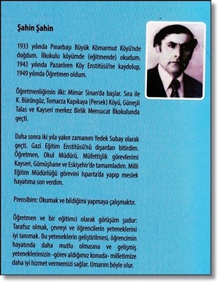 “Bana ilk okuma yazmayı öğretirken kıvırcık saçlı kumral genç bir öğretmendi. İlk duayı da o öğretti. Anadolu’nun bağrından kopan bir köy çocuğu olarak tüm zorlukları aşıp okumuş, eğitim alanında yıllarca ülkesine hizmet etmiştir.