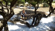 Ertesi gün adanın çarşısında kısacık bir tur attık ve tura katıldık. Üç tane köy göreceğiz. En önemlisi sakız damlatan ağaçları göreceğiz. Birincisi seramikleri ile ünlü Armolia’da bir kaç tane seramik atölyesi vardı. Daha çok güneş simgesi kullanılmış. Almaya değer görmedim. Ağaçlar, İşte tam burada biraz yan yatmışlar. Üzerinde pırlanta gibi parlayan damlalarla size “merhaba” diyorlar.