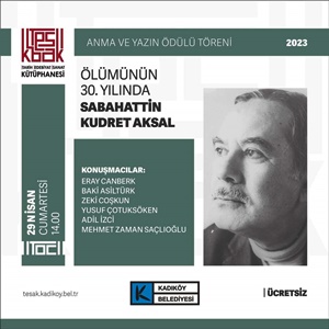 Uğraştaşım Yusuf Çotuksöken, Bir gün önce yüz yüze çağrıda bulundu. İnternet ortamında bir duyurusunu okudum: “Bugün saat 14.00′ te TESAK’ta (Kadıköy), Sabahattin Kudret Aksal’ı anacağız… Yusuf Çotuksöken, Mehmet Zaman Saçlıoğlu, Zeki Coşkun ve Baki Asiltürk…”