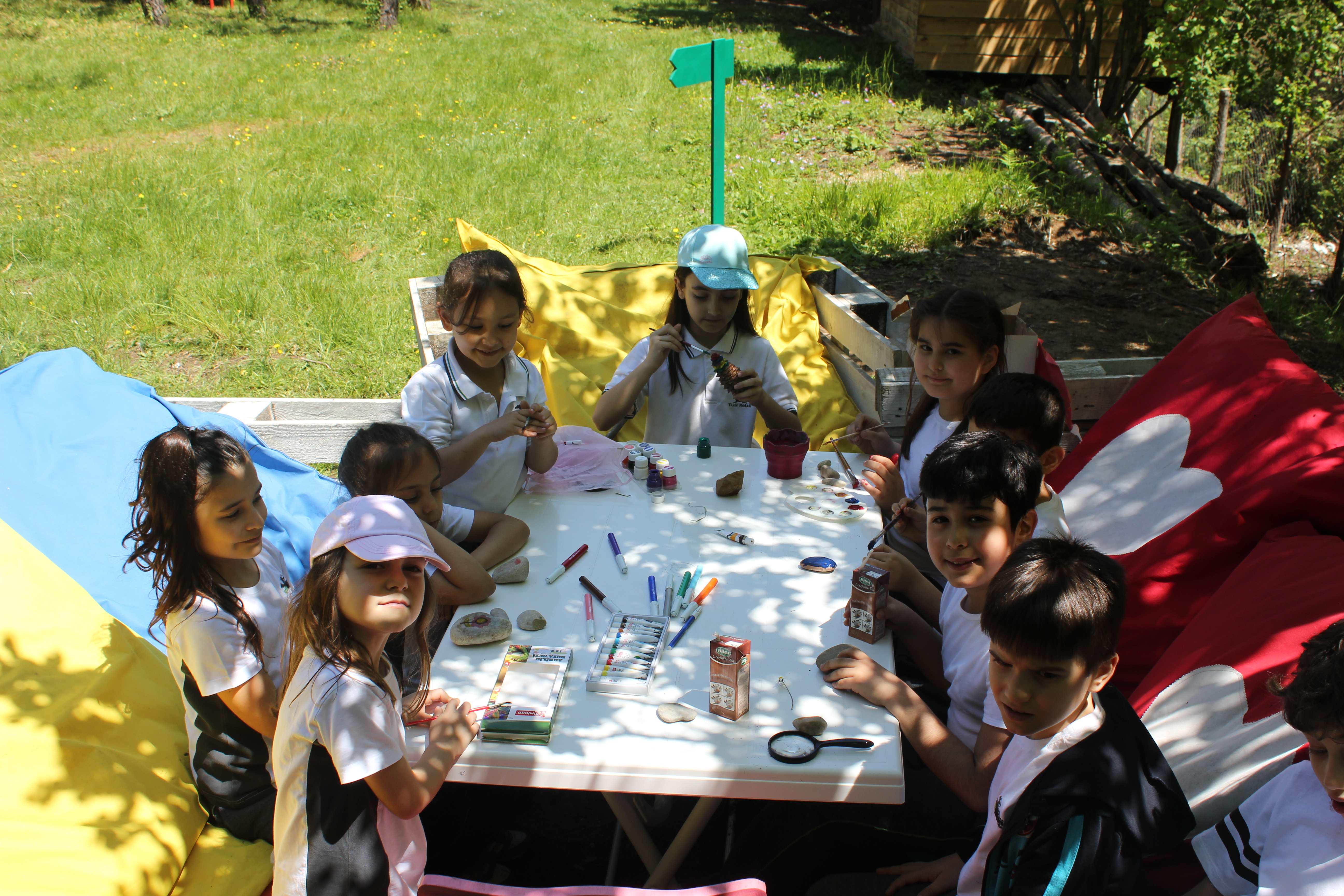 Kahvaltı ile başladı günümüz. Trafikten uzak doğa ile baş başa olan öğrenciler, keyifle kırsal alanda oyunlarına başladılar.
