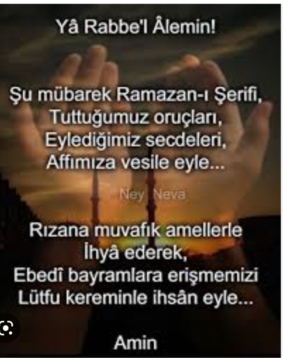 Ramazan 11 ayın sultanı…ve af ayı…Hazreti Muhammed Mustafa (S.A.V) bir hadislerinde “her kim ki Ramazan ayına erişir de kendi günahlarını affettiremez ahreti kazanamazsa burnu sürtsün “buyurdu namazlarla temizlen günahlarından oruçlarla temizlen zikirlerle temizlen sohbetler dinle bolbol…zekatını ver…bir hurmayla da olsa bir oruçluya iftaraçtır…Deprem bölgesi unutulmamalı…