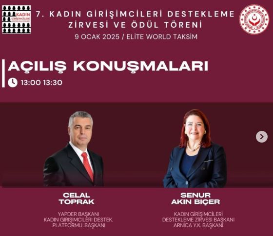 Açılış konuşmasında kadınlarla çalışmanın keyfini yaşadığını aktaran Celal Toprak, “Kadınlar ayrıntılar üzerinde çok duruyorlar ve ben de onların bu ayrıntılarının kolaylaştırıcısı olarak görev yapıyorum. Ama ayrıntılar sonunda mükemmeliyeti getiriyor. Bu etkinlik ise 7’ncisinde mükemmel hale geldi. Daha çok kadın girişimcinin yetişmesini ve Türkiye’nin bu girişimcilerle tanışmasını istiyoruz. Kadın çalışan sayısında çok iyi bir durumda değiliz. Ödül verdiğimiz her kadının sonradan işlerini geliştirdiğini gözlemliyoruz. Sanıyorum ki; üçüncü zirvede Türkiye’yi ve dünyayı kadınlar kurtaracak demiştik. Hala bu sözümüzün arkasındayız. Türkiye’yi ve dünyayı kadın girişimcilerin emekleri kurtaracak” şeklinde konuştu.